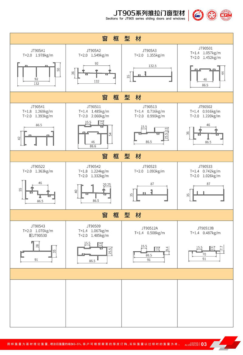 鋁型材規(guī)格型號:JT905 二