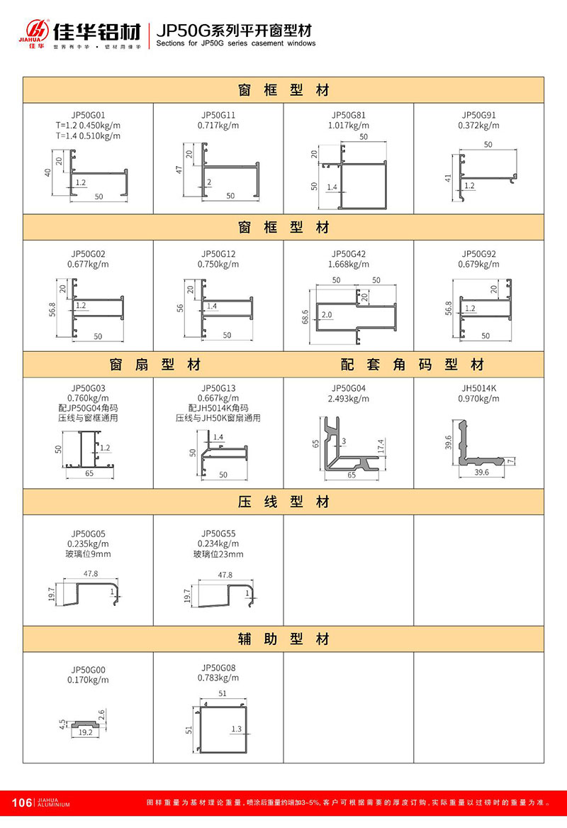 鋁型材規(guī)格型號(hào):JP50G