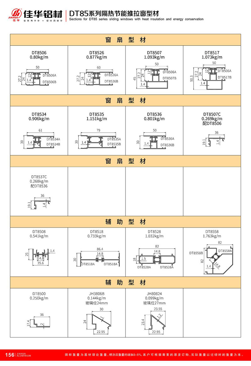 鋁型材規(guī)格型號:DT85推拉系列 A