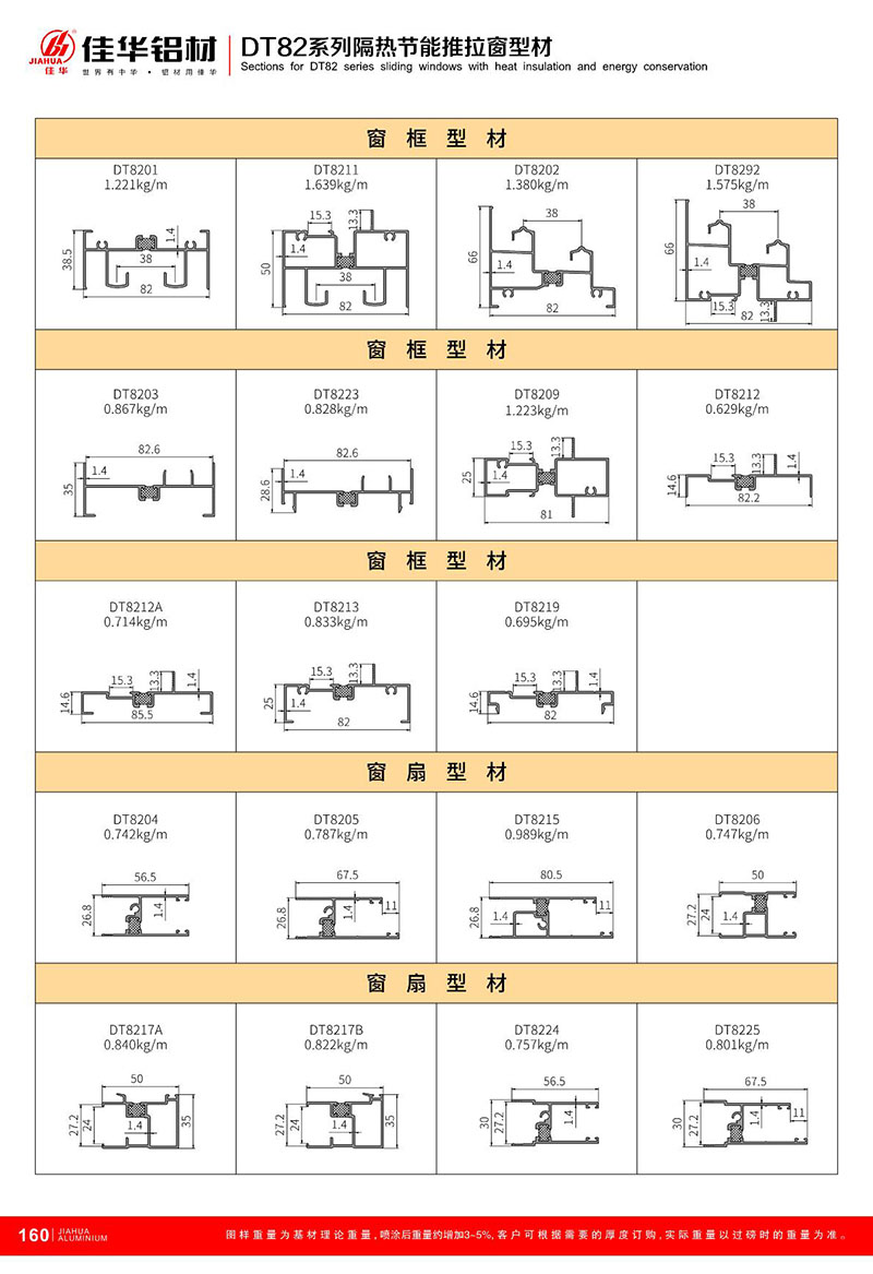 鋁型材規(guī)格型號(hào):DT82推拉系列